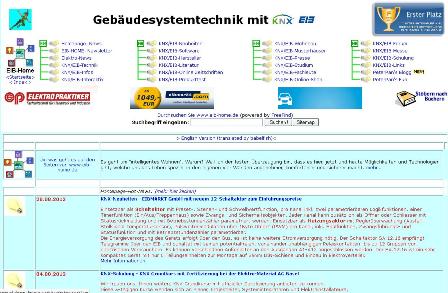 EIB-Home.de Als es im Internet noch keine Informationen für den Wohnbau mit KNX gab, spielte ich die erste Seite mit Links zu Herstellern auf einen Server. Am Anfang wollte ich eigentlich lediglich meine Bookmarks zum Thema EIB ins Internet stellen. Genau am 20.05.2000 wurde die erste Seite auf die Domain geladen. Browser-Bookmarks sind bekanntlich nur auf dem jeweiligen PC zugänglich. Das Medium Internet stellt hingegen Informationen per Links der Allgemeinheit zur Verfügung. Nun stehen mittlerweile über 500 einzelne Infoseiten unter www.eib-home.de im Internet. Bis heute haben seit Mai 2000 über 5,0 Mio. Benutzer auf die Website zugegriffen und sich mit Informationen rund um die Gebäudetechnik mit EIB versorgt. 2010 wurde meine Website als die beste internationale KNX-Informationsseite prämiert.